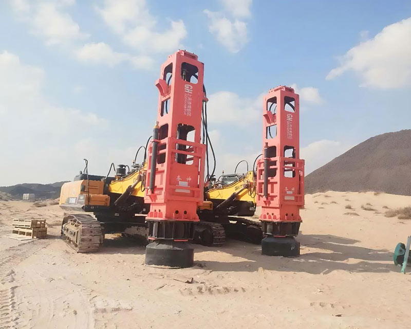 2024年底,上海港灣集團(tuán)采購(gòu)的6臺(tái)HC150挖掘機(jī)液壓夯分別在沙特阿拉伯利雅得 阿聯(lián)酋阿布扎比等沙漠地址環(huán)境下的地面改進(jìn)工程中使用。